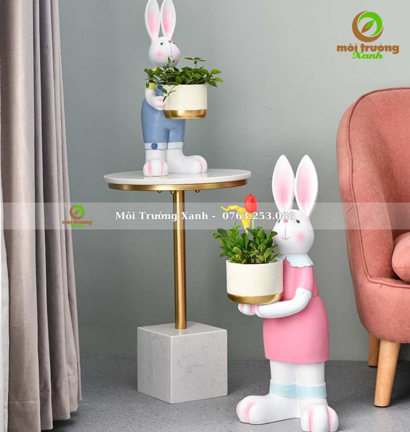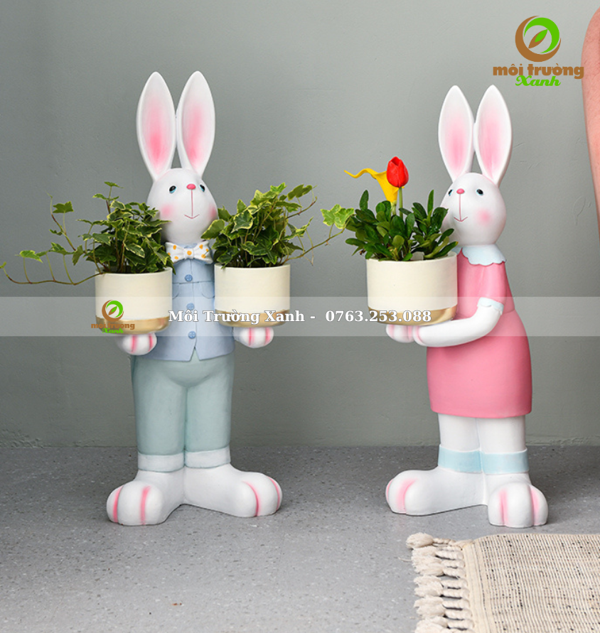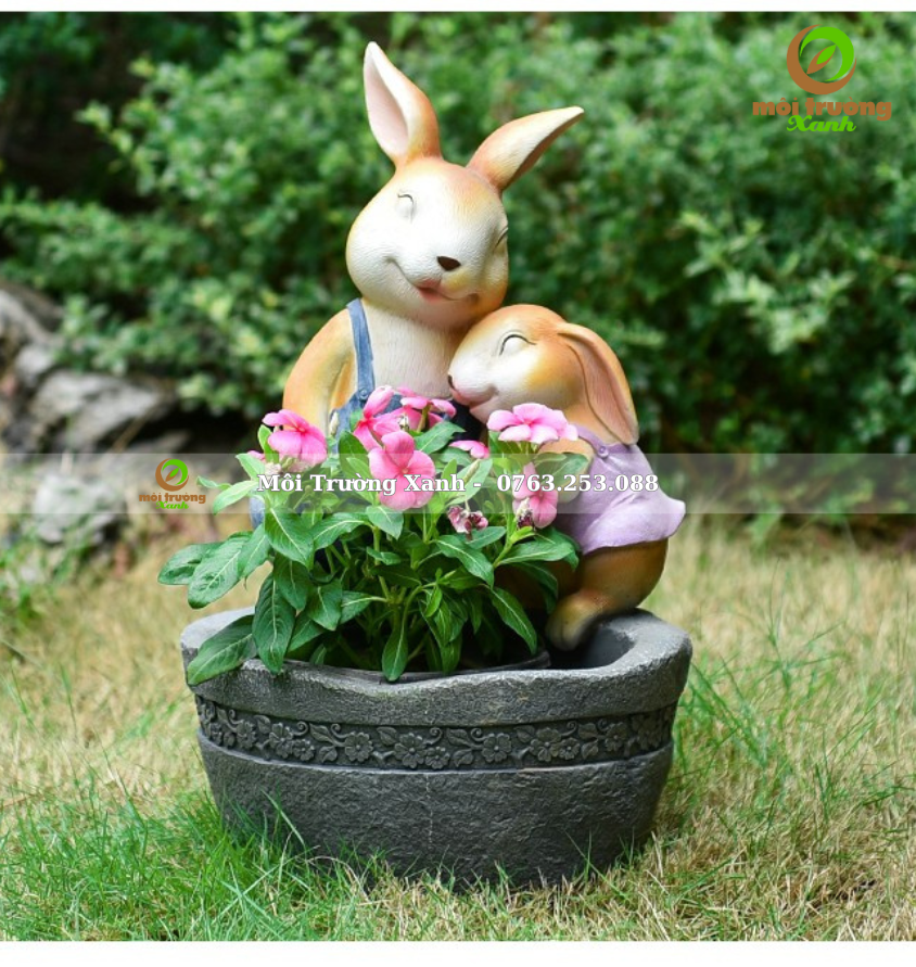 ឈ្មោះផលិតផល៖ ទេសភាពខ្នាតតូចរបស់ទន្សាយមួយគូនៅជាប់ផើងផ្កា
